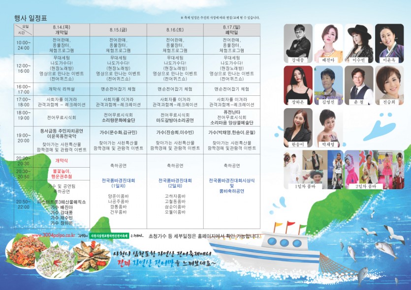제 22회 사천시 삼천포항 자연산 전어축제 리플릿 페이지 정보 작성자 관… 댓글 0건 조회 1,739회 작성일 25-08-01 10:14 본문 제 22회 사천시 삼천포항 자연산 전어축제 리플릿 목록 다음글제21회 사천시 삼천포항 자연산 전어축제 일정 24.07.08 댓글목록 댓글목록 등록된 댓글이 없습니다.